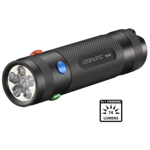 The TX10 has four colors, white, red, green and blue - each controlled by a separate switch. White light is ideal for all-purpose illumination and provides perfect color distinction and clarity. Red is best when you only need a little bit of light - it preserves night vision. Green preserves night vision but with adequate color distinction, which allows hunters to move about at night or read maps without scaring off game. The blue preserves night vision and can cut through fog. A lightweight aluminum casing offers great durability and will hold up to heavy daily use. Backed by Coast's lifetime guarantee against defects in materials and workmanship.