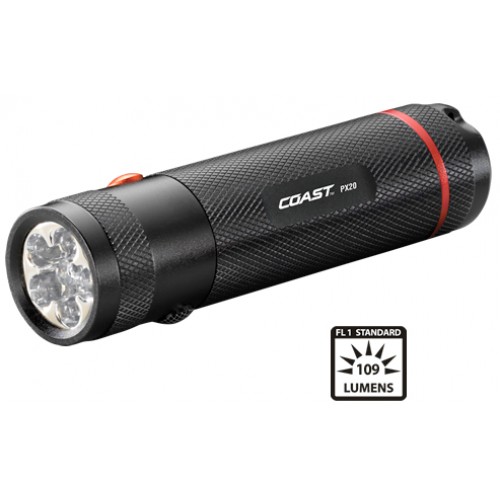 The PX20 Dual Color LED Flashlight combines five super bright white LEDs with one red LED. Each LED is controlled by a separate switch, allowing you to turn on the desired color with one click; no cycling through switch modes to find your color. The white light is for general flashlight use, while the red LED is perfect when you only need minimal light, such as when reading a map. A lightweight aluminum casing offers great durability and will hold up to heavy daily use. Backed by Coast's lifetime guarantee against defects in materials and workmanship.